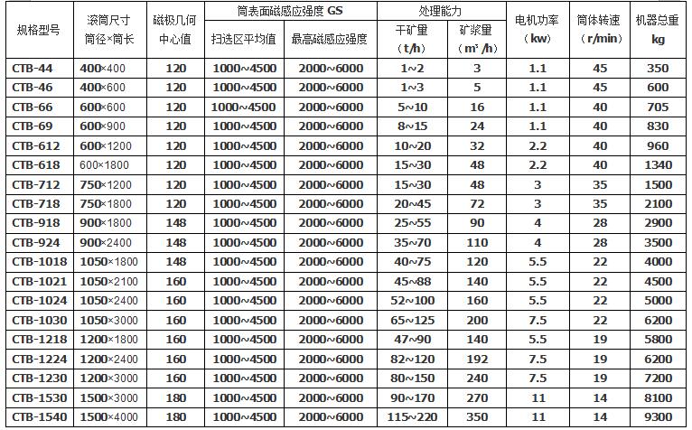 CTB型半逆流濕式磁選機适用于濕式選别礦石粒度為(wèi)0.5mm以下強磁性物料的掃選和(hé)精選,尤其适用于粒度為(wèi)0.15~0mm礦物的精選。或者除去非磁性礦物中混雜的強磁性礦物。CTB型半逆流濕式磁選機可(kě)以獲得(de)高(gāo)質量的鐵(tiě)精礦,同時(shí)也能得(de)到較好的回收率,所以半逆流磁選機在生(shēng)産實踐中得(de)到廣泛的應用。本機可(kě)以連續給礦和(hé)排礦,磁場(chǎng)強度大(dà),磁場(chǎng)梯度高(gāo),具有(yǒu)較高(gāo)的處理(lǐ)能力。可(kě)以多(duō)台串聯和(hé)并聯,實現多(duō)次的掃選和(hé)精選。